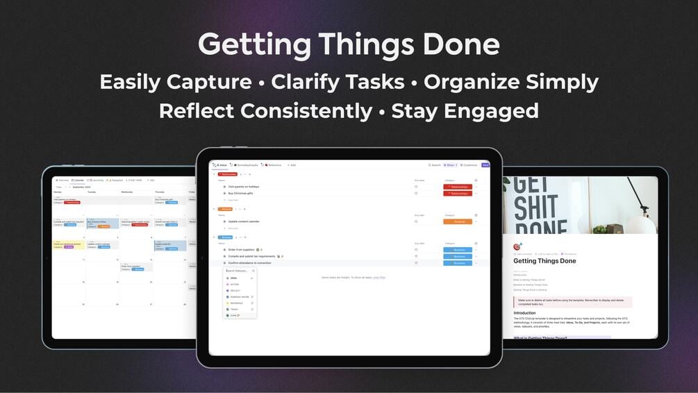 GTD® and Getting Things Done® are registered trademarks of the David Allen Company. Our ClickUp GTD System, while inspired by the GTD methodology, is not affiliated with or endorsed by the David Allen Company.