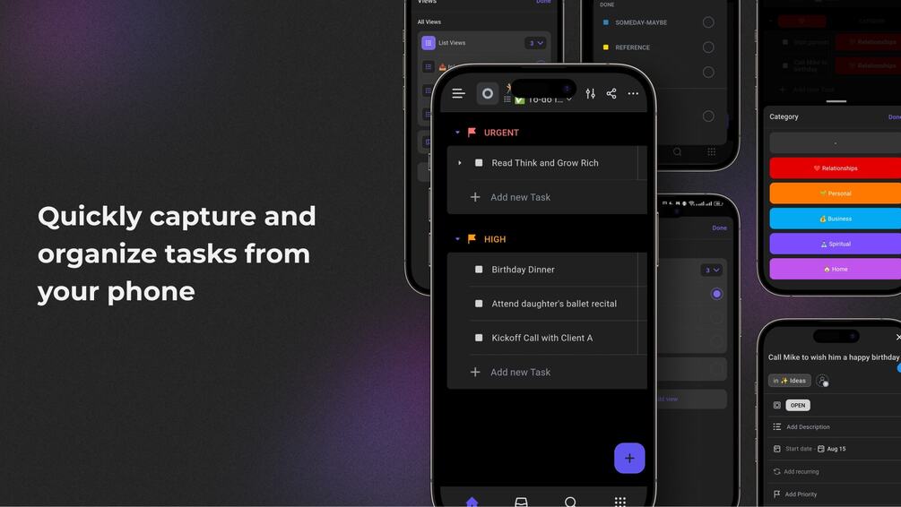- Review & Reflect: Weekly and quarterly review checklists to track progress and improve productivity, now simplified without recurring tasks.FAQs